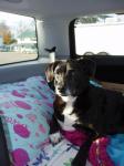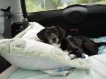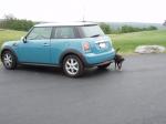 We're finding that Ted really likes her new car! OK, so maybe I take the corners a little faster than I did in the Subie. No problem for Ted. She seems to like the way the MINI sticks to the corners and she doesn't get jostled around. We've got the rear boot area (created when the seats are down) stuffed with foam padding and she seems to like to hang out back there. She's a funny one...