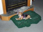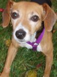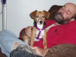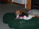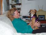 We had a couple great walks with her (she has to be on a leash). She's all business on those walks. Between the beagle and the terrier in her, believe me, she doesn't miss a thing. After being on patrol, she'll come in, jump in one of our laps, then fall almost completely asleep. I say "almost" because her ears are always listening for any little noise that says she's got to go back on the clock again. And if so, then she's up immediately and back to work.