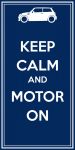 hey everyone! I designed a poster with the classic "Keep Calm and Cary On" theme in mind, but turned it into "Keep Calm and Motor On" with a picture of a Cooper up at the top. its for sale on etsy.com, and I'll be posting a link to the page where its for sale. The posters run for $10, and I can make them any color you'd like and I can also draw any MINI on there wether it be a Countryman, Cooper, Clubman, Roadster, or Convertible! Check it out! :) http://www.etsy.com/listing/112494397/mini-cooper-keep-calm-and-motor-on